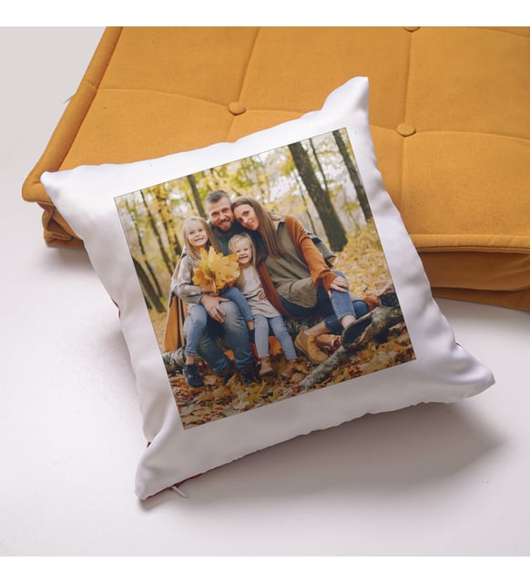 Kare yastık üzerine dilediğiniz fotoğraf veya mesaj profesyonel tasarımla hazırlanarak sublimasyon baskı yöntemiyle uygulanır.