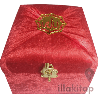 M285K - Mühürlü Cep Boy Kadife Sandıklı Mealli Kuran-ı Kerim - Kırmızı